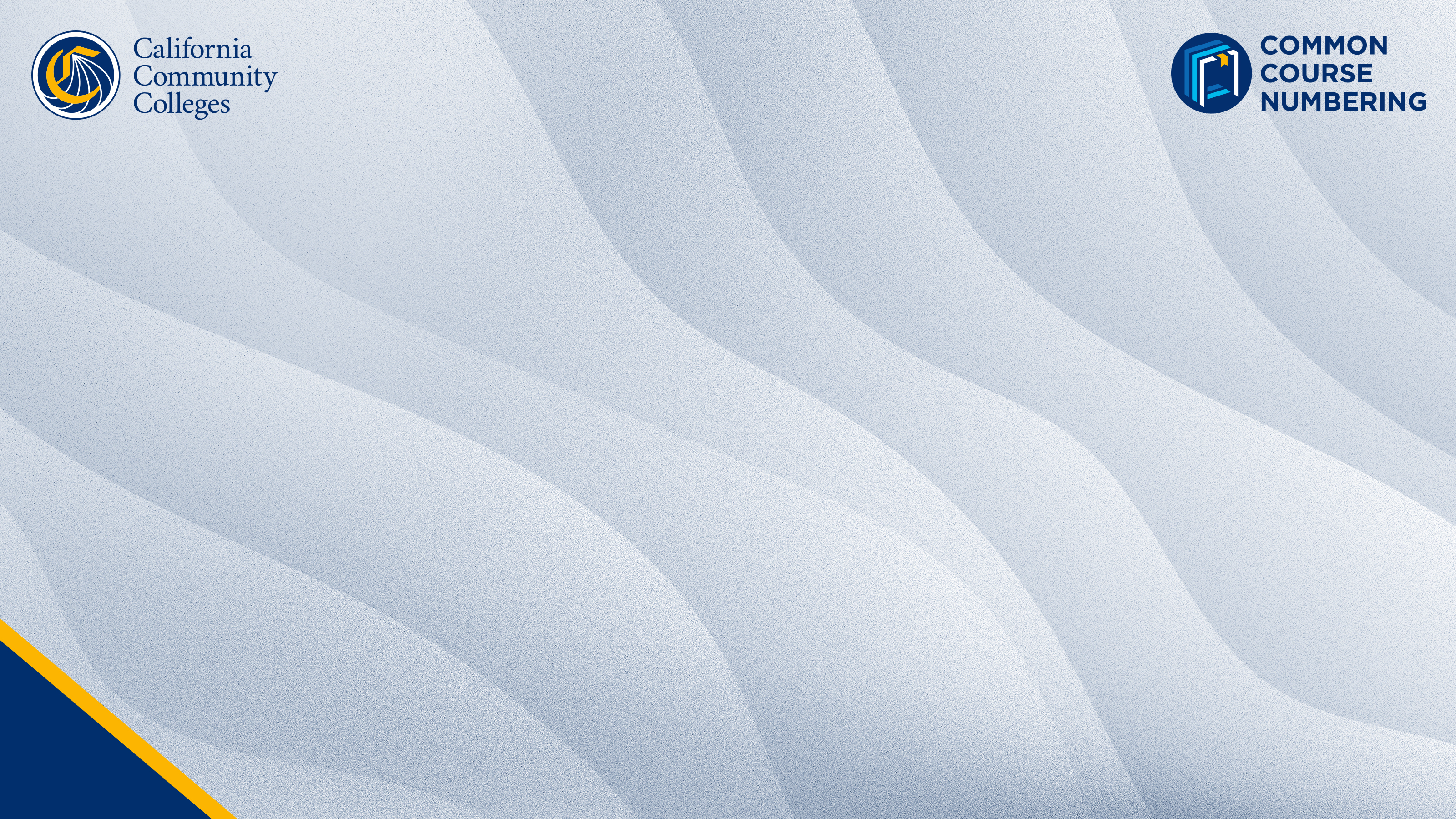For questions or concerns regarding the Common Course Numbering Project contact: ccn@cccco.edu.